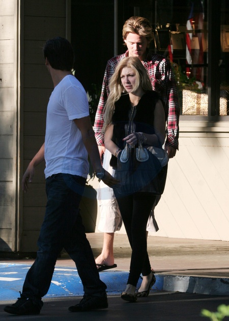 Sean Stewart z przyjaciolka Caleigh Peters wychodzi z restauracji Deli, Bel Air
