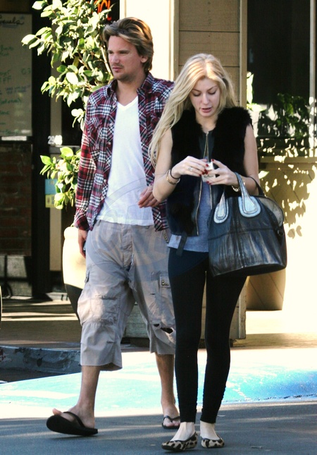 Sean Stewart z przyjaciolka Caleigh Peters wychodzi z restauracji Deli, Bel Air
