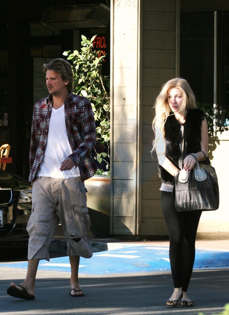 Sean Stewart z przyjaciolka Caleigh Peters wychodzi z restauracji Deli, Bel Air