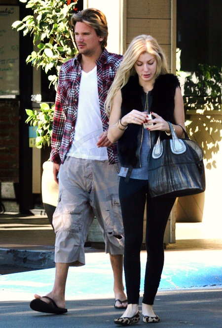Sean Stewart z przyjaciolka Caleigh Peters wychodzi z restauracji Deli, Bel Air