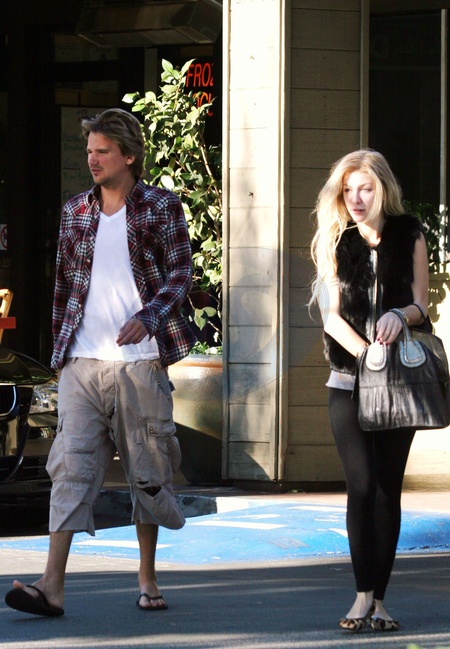 Sean Stewart z przyjaciolka Caleigh Peters wychodzi z restauracji Deli, Bel Air