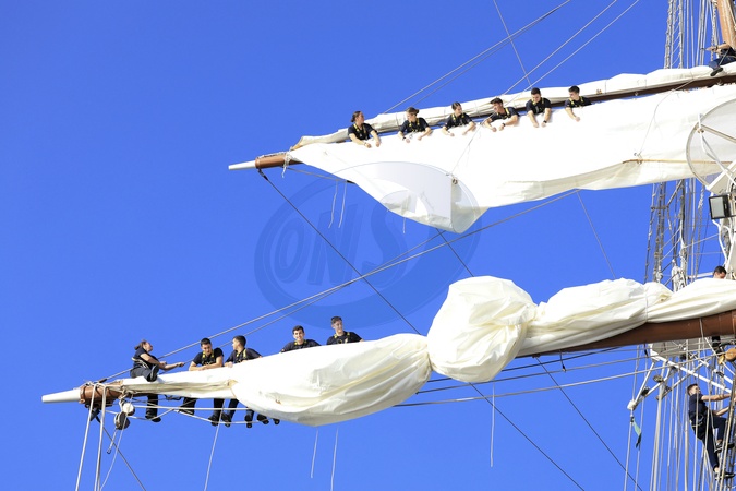 La princesse Leonor d'Espagne est en formation sur le voilier école Juan Sebastian De Elcano le 31 janvier 2025. Crown Princess Leonor on board of the training ship ‘Juan Sebastián de Elcano' January 31, 2025. please credit Casa SM El Rey-Agence