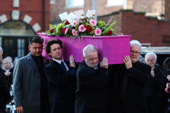 The coffin of Linda Nolan is carried into the funeral during the The Funeral of Linda Nolan at St. Paul's Church, Blackpool, United Kingdom, 1st February 2025, Credit:Gareth Evans/News Images / Avalon