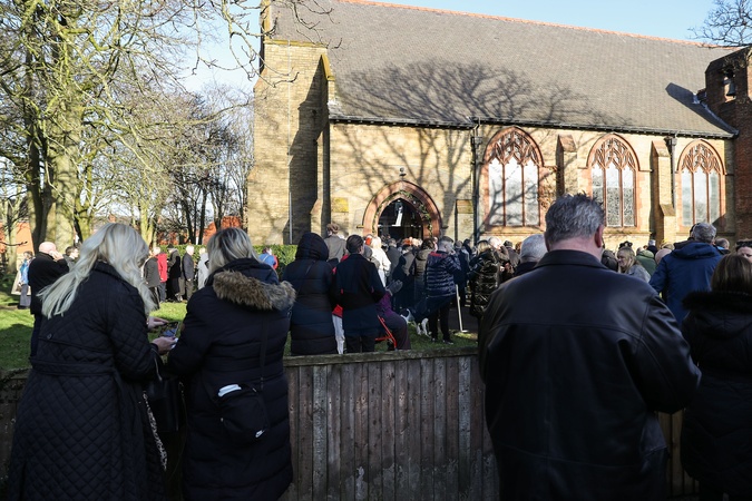 Mourners pay their respects for the Funeral of Linda Nolan at St. Paul's Church, Blackpool, United Kingdom, 1st February 2025, Credit:Gareth Evans/News Images / Avalon