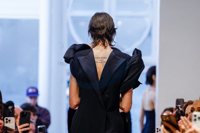 Détail tatouage - Défilé Peet Dullaert à l'hôtel de Soubise Collection Haute Couture Printemps/Eté 2025 lors de la Fashion Week de Paris (PFW), France, le 30 janvier 2025. Peet Dullaert Spring/Summer 2025 Haute Couture Collection show at the Hotel de Soubise during Paris Fashion Week (PFW), France, January 30, 2025.