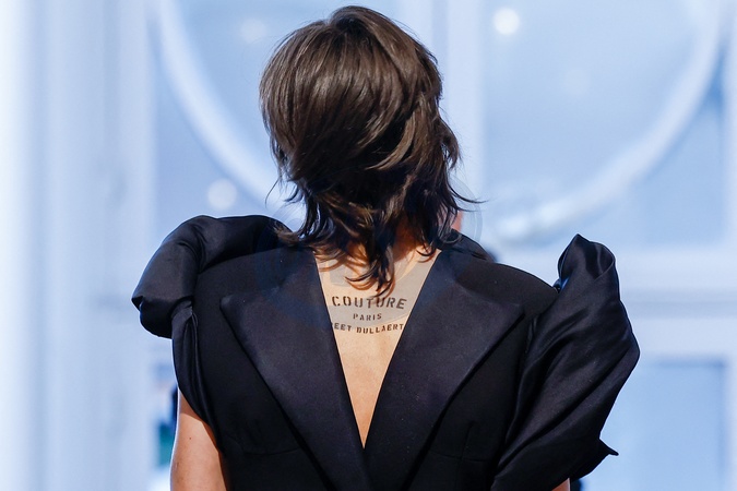 Détail tatouage - Défilé Peet Dullaert à l'hôtel de Soubise Collection Haute Couture Printemps/Eté 2025 lors de la Fashion Week de Paris (PFW), France, le 30 janvier 2025. Peet Dullaert Spring/Summer 2025 Haute Couture Collection show at the Hotel de Soubise during Paris Fashion Week (PFW), France, January 30, 2025.