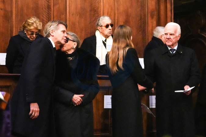 HRH Prince Emanuele Filiberto (Le prince Emanuele Filiberto de Savoie, prince de Venise et de Piémont, duc de Savoie), Princess Marina Doria (Marina Ricolfi-Doria) and Princess Vittoria of Savoia (Vittoria de Savoie, princesse de Carignan et marquise d'Ivrée) during the HRH Prince Vittorio Emanuele votive mass held at the Basilica of Superga on February 1st, 2025 in Turin, Italy. © Lucia Sabatelli/Bestimage