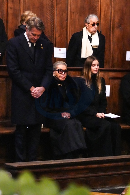 HRH Prince Emanuele Filiberto (Le prince Emanuele Filiberto de Savoie, prince de Venise et de Piémont, duc de Savoie), Princess Marina Doria (Marina Ricolfi-Doria) and Princess Vittoria of Savoia (Vittoria de Savoie, princesse de Carignan et marquise d'Ivrée) during the HRH Prince Vittorio Emanuele votive mass held at the Basilica of Superga on February 1st, 2025 in Turin, Italy. © Lucia Sabatelli/Bestimage