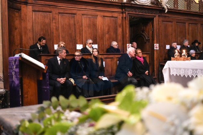 HRH Prince Emanuele Filiberto (Le prince Emanuele Filiberto de Savoie, prince de Venise et de Piémont, duc de Savoie), Princess Marina Doria (Marina Ricolfi-Doria) and Princess Vittoria of Savoia (Vittoria de Savoie, princesse de Carignan et marquise d'Ivrée) during the HRH Prince Vittorio Emanuele votive mass held at the Basilica of Superga on February 1st, 2025 in Turin, Italy. © Lucia Sabatelli/Bestimage