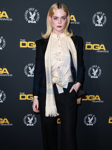 BEVERLY HILLS, LOS ANGELES, CALIFORNIA, USA - FEBRUARY 08: Elle Fanning wearing Valentino and Cartier jewelry arrives at the 77th Annual Directors Guild Of America Awards held at The Beverly Hilton Hotel on February 8, 2025 in Beverly Hills, Los Angeles, California, United States., Credit:Xavier Collin / Avalon
