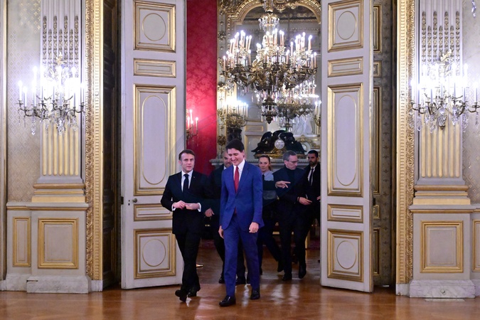 Justin Trudeau, premier ministre du Canada, le président Emmanuel Macron lors de la conclusion de la réunion sur le partenariat mondial pour l'intelligence artificielle au Quai d'Orsay à Paris le 9 février 2025 © Christian Liewig / Bestimage Conclusion of the meeting on the global partnership for artificial intelligence at the Quai d'Orsay in Paris on 9 February 2025
