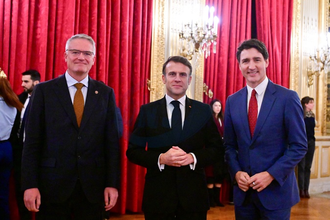 Mathias Cormann, Secrétaire général de l'Organisation de coopération et de développement économiques (OCDE, le président Emmanuel Macron, Justin Trudeau, premier ministre du Canada lors de la conclusion de la réunion sur le partenariat mondial pour l'intelligence artificielle au Quai d'Orsay à Paris le 9 février 2025 © Christian Liewig / Bestimage Conclusion of the meeting on the global partnership for artificial intelligence at the Quai d'Orsay in Paris on 9 February 2025