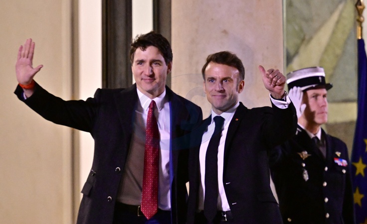 Le président Emmanuel Macron accueille Justin Trudeau, premier ministre du Canada, pour un dîner de travail au palais de l'Elysée dans le cadre du sommet pour l'action sur l'IA le 9 février 2025 © Christian Liewig / Bestimage President Emmanuel Macron welcomes Justin Trudeau, Prime Minister of Canada, for a working dinner at the Elysée Palace as part of the summit for action on AI on 9 February 2025