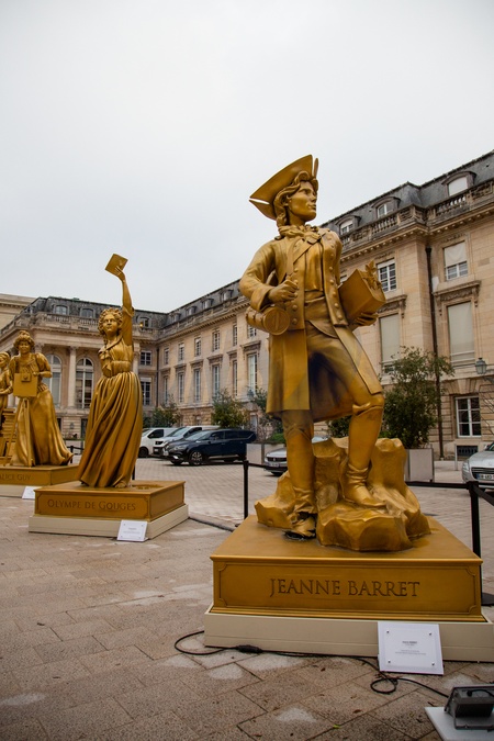 Statue de Jeanne Barret - Illustration des statues de dix femmes célèbres, installées près du pont Alexandre-III lors de la cérémonie d'ouverture des Jeux Olympiques de Paris 2024. Le 16 janvier 2025 © Céline Bonnarde / Bestimage Illustration of the statues of ten famous women, installed near the Alexandre-III bridge during the opening ceremony of the Paris 2024 Olympic Games. On January 16, 2025