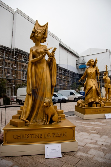 Statue de Christine de Pisan - Illustration des statues de dix femmes célèbres, installées près du pont Alexandre-III lors de la cérémonie d'ouverture des Jeux Olympiques de Paris 2024. Le 16 janvier 2025 © Céline Bonnarde / Bestimage Illustration of the statues of ten famous women, installed near the Alexandre-III bridge during the opening ceremony of the Paris 2024 Olympic Games. On January 16, 2025