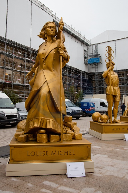 Statue de Louise Michel - Illustration des statues de dix femmes célèbres, installées près du pont Alexandre-III lors de la cérémonie d'ouverture des Jeux Olympiques de Paris 2024. Le 16 janvier 2025 © Céline Bonnarde / Bestimage Illustration of the statues of ten famous women, installed near the Alexandre-III bridge during the opening ceremony of the Paris 2024 Olympic Games. On January 16, 2025