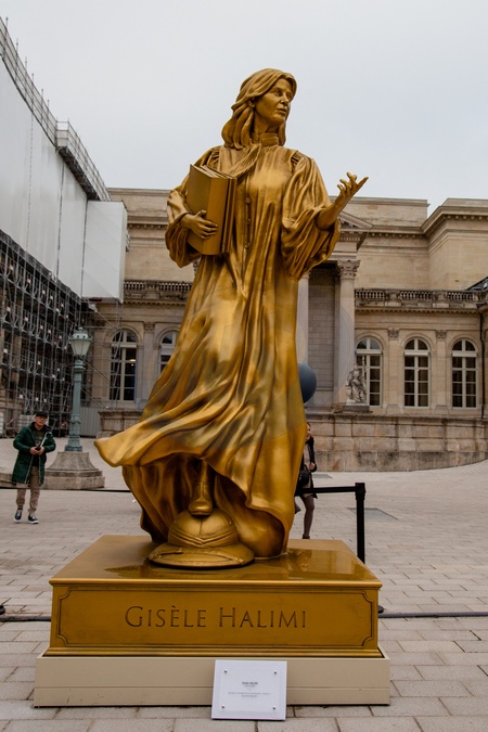 Statue de Gisèle Halimi - Illustration des statues de dix femmes célèbres, installées près du pont Alexandre-III lors de la cérémonie d'ouverture des Jeux Olympiques de Paris 2024. Le 16 janvier 2025 © Céline Bonnarde / Bestimage Illustration of the statues of ten famous women, installed near the Alexandre-III bridge during the opening ceremony of the Paris 2024 Olympic Games. On January 16, 2025