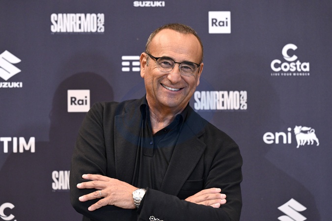 Carlo Conti during advertising photocall during 75th Sanremo Festival, Sanremo, Italy 10 Feb 2025, Credit:Maria Laura Antonelli / Avalon