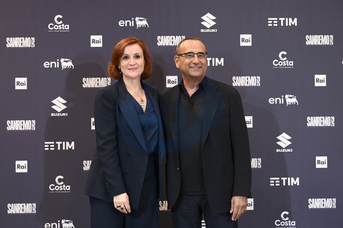 Sandra Aitala Brand Strategy, Media & Commercial Communication, TIM, Carlo Conti during advertising photocall during 75th Sanremo Festival, Sanremo, Italy 10 Feb 2025, Credit:Maria Laura Antonelli / Avalon