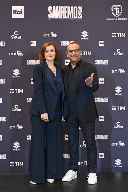 Sandra Aitala Brand Strategy, Media & Commercial Communication, TIM, Carlo Conti during advertising photocall during 75th Sanremo Festival, Sanremo, Italy 10 Feb 2025, Credit:Maria Laura Antonelli / Avalon