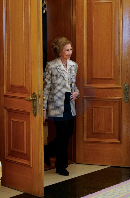 Królowa Sofia uczestniczy w audiencji z członkami stowarzyszenia Heroes de 4 Patas (Czternożni Bohaterowie) w Pałacu Zarzuela w Madrycie.