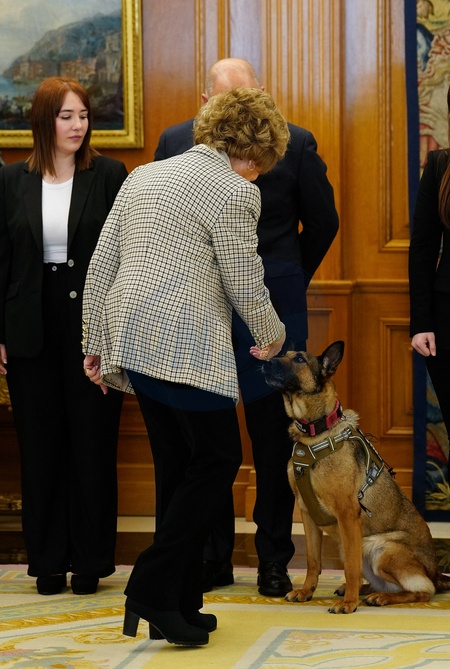 Królowa Sofia uczestniczy w audiencji z członkami stowarzyszenia Heroes de 4 Patas (Czternożni Bohaterowie) w Pałacu Zarzuela w Madrycie.