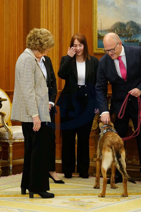 Królowa Sofia uczestniczy w audiencji z członkami stowarzyszenia Heroes de 4 Patas (Czternożni Bohaterowie) w Pałacu Zarzuela w Madrycie.