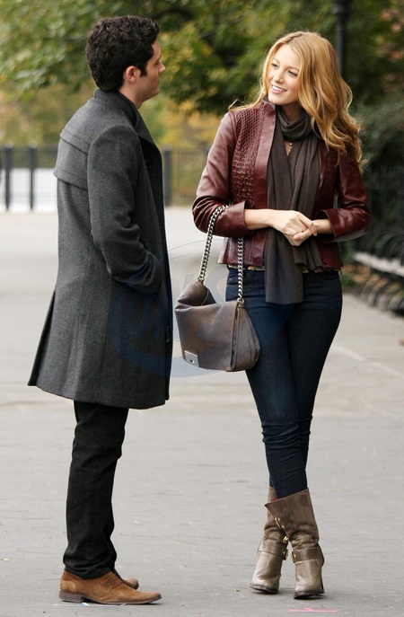 Penn Badgley i Blake Lively na planie filmowym , Nowy Jork