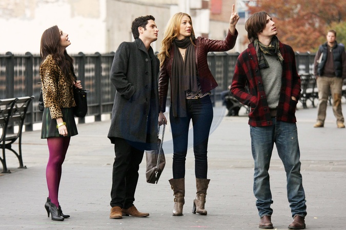 Penn Badgley i Blake Lively na planie filmowym , Nowy Jork