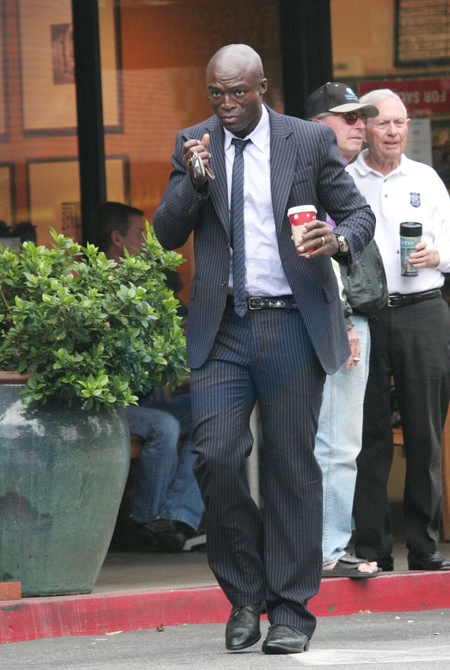 Seal w garniturze wychodzi z Beverly Glen' Starbucks Coffee, Los Angeles