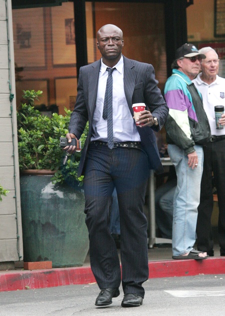 Seal w garniturze wychodzi z Beverly Glen' Starbucks Coffee, Los Angeles