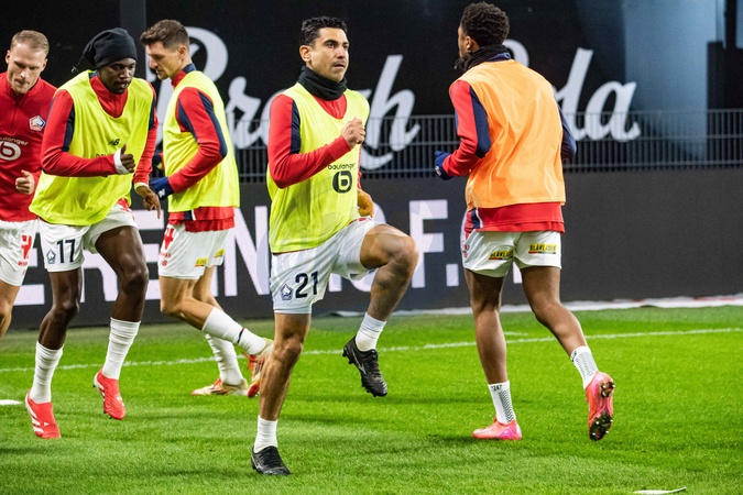 Benjamin André (Lille OSC) - Match de Ligue 1 McDonald's "Rennes - Lille (0-2)" au Roazhon Park, le 16 février 2025. Huit mois après son malaise cardio-respiratoire, le milieu de terrain Nabil Bentaleb, autorisé à jouer avec un défibrilateur, une première en Ligue 1, a ouvert le score pour son grand retour avec son équipe du LOSC. Ligue 1 McDonald's match "Rennes - Lille (0-2)" at Roazhon Park, February 16, 2025. Eight months after his cardio-respiratory malaise, midfielder Nabil Bentaleb, authorized to play with a defibrillator, a first in Ligue 1, opened the scoring for his big comeback with his LOSC team.