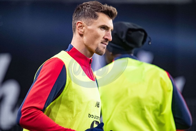 Thomas Meunier (Lille OSC) - Match de Ligue 1 McDonald's "Rennes - Lille (0-2)" au Roazhon Park, le 16 février 2025. Huit mois après son malaise cardio-respiratoire, le milieu de terrain Nabil Bentaleb, autorisé à jouer avec un défibrilateur, une première en Ligue 1, a ouvert le score pour son grand retour avec son équipe du LOSC. Ligue 1 McDonald's match "Rennes - Lille (0-2)" at Roazhon Park, February 16, 2025. Eight months after his cardio-respiratory malaise, midfielder Nabil Bentaleb, authorized to play with a defibrillator, a first in Ligue 1, opened the scoring for his big comeback with his LOSC team.