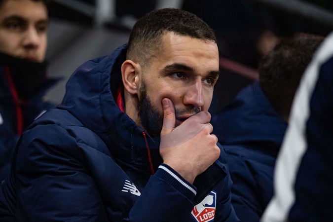 Nabil Bentaleb (Lille OSC) - Match de Ligue 1 McDonald's "Rennes - Lille (0-2)" au Roazhon Park, le 16 février 2025. Huit mois après son malaise cardio-respiratoire, le milieu de terrain Nabil Bentaleb, autorisé à jouer avec un défibrilateur, une première en Ligue 1, a ouvert le score pour son grand retour avec son équipe du LOSC. Ligue 1 McDonald's match "Rennes - Lille (0-2)" at Roazhon Park, February 16, 2025. Eight months after his cardio-respiratory malaise, midfielder Nabil Bentaleb, authorized to play with a defibrillator, a first in Ligue 1, opened the scoring for his big comeback with his LOSC team.