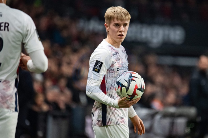 Hakon Arnar Haraldsson (Lille OSC) - Match de Ligue 1 McDonald's "Rennes - Lille (0-2)" au Roazhon Park, le 16 février 2025. Huit mois après son malaise cardio-respiratoire, le milieu de terrain Nabil Bentaleb, autorisé à jouer avec un défibrilateur, une première en Ligue 1, a ouvert le score pour son grand retour avec son équipe du LOSC. Ligue 1 McDonald's match "Rennes - Lille (0-2)" at Roazhon Park, February 16, 2025. Eight months after his cardio-respiratory malaise, midfielder Nabil Bentaleb, authorized to play with a defibrillator, a first in Ligue 1, opened the scoring for his big comeback with his LOSC team.