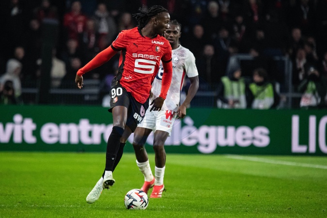 Ismael Koné (Stade Rennais) - Match de Ligue 1 McDonald's "Rennes - Lille (0-2)" au Roazhon Park, le 16 février 2025. Huit mois après son malaise cardio-respiratoire, le milieu de terrain Nabil Bentaleb, autorisé à jouer avec un défibrilateur, une première en Ligue 1, a ouvert le score pour son grand retour avec son équipe du LOSC. Ligue 1 McDonald's match "Rennes - Lille (0-2)" at Roazhon Park, February 16, 2025. Eight months after his cardio-respiratory malaise, midfielder Nabil Bentaleb, authorized to play with a defibrillator, a first in Ligue 1, opened the scoring for his big comeback with his LOSC team.