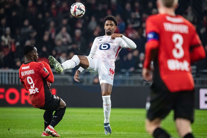 Alexsandro (Lille OSC) - Match de Ligue 1 McDonald's "Rennes - Lille (0-2)" au Roazhon Park, le 16 février 2025. Huit mois après son malaise cardio-respiratoire, le milieu de terrain Nabil Bentaleb, autorisé à jouer avec un défibrilateur, une première en Ligue 1, a ouvert le score pour son grand retour avec son équipe du LOSC. Ligue 1 McDonald's match "Rennes - Lille (0-2)" at Roazhon Park, February 16, 2025. Eight months after his cardio-respiratory malaise, midfielder Nabil Bentaleb, authorized to play with a defibrillator, a first in Ligue 1, opened the scoring for his big comeback with his LOSC team.