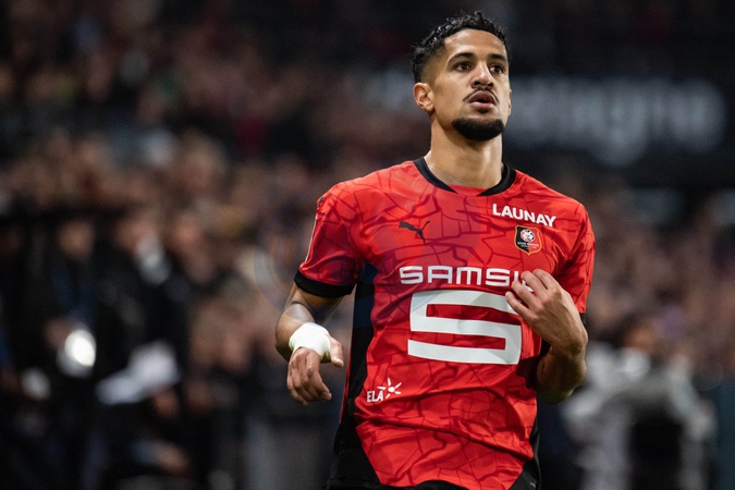 Ludovic Blas (Stade Rennais) - Match de Ligue 1 McDonald's "Rennes - Lille (0-2)" au Roazhon Park, le 16 février 2025. Huit mois après son malaise cardio-respiratoire, le milieu de terrain Nabil Bentaleb, autorisé à jouer avec un défibrilateur, une première en Ligue 1, a ouvert le score pour son grand retour avec son équipe du LOSC. Ligue 1 McDonald's match "Rennes - Lille (0-2)" at Roazhon Park, February 16, 2025. Eight months after his cardio-respiratory malaise, midfielder Nabil Bentaleb, authorized to play with a defibrillator, a first in Ligue 1, opened the scoring for his big comeback with his LOSC team.