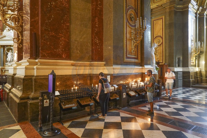Hungary, Budapest, Inside the St. Stephen's Basilica , a Roman Catholic basilica . It is the largest church in Budapest and a World Heritage Site. Praying people before the prayer candlesPhoto © Fabio Mazzarella/Sintesi *** Local Caption ***, Credit:Fabio Mazzarella / Avalon