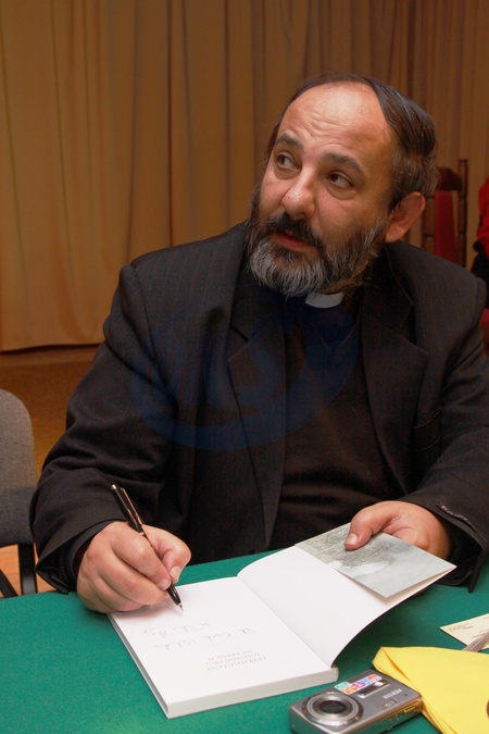 Warszawa Ursus, Dom Kultury, Ks.Tadeusz Isakowicz Zaleski podpisuje swoja nowa ksiazke Przemilczane Ludobojstwo na Kresach