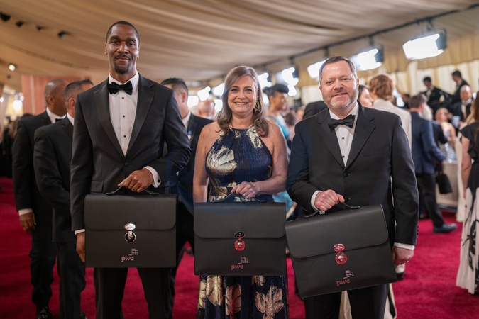 Representatives of PricewaterhouseCoopers (PwC) arrive on the red carpet of the 97th Oscars® at the Dolby® Theatre at Ovation Hollywood on Sunday, March 2, 2025., Credit:Avalon.red / Avalon