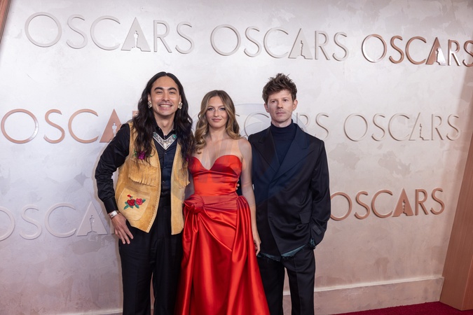 Julian Brave NoiseCat, Emily Kassie, and Kellen Quinn arrive on the red carpet of the 97th Oscars® at the Dolby® Theatre at Ovation Hollywood on Sunday, March 2, 2025., Credit:Avalon.red / Avalon