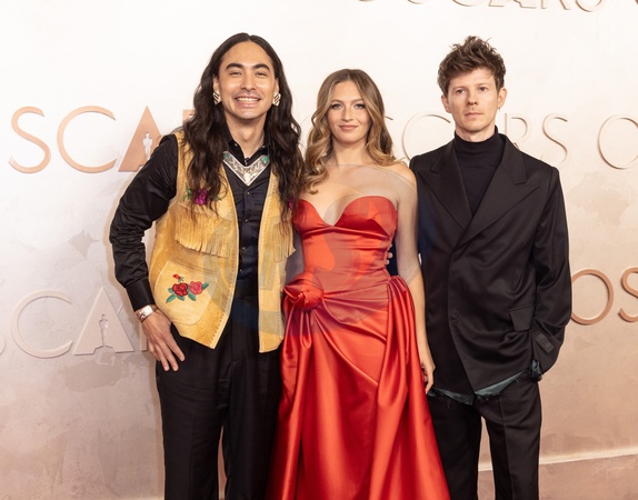 Julian Brave NoiseCat, Emily Kassie, and Kellen Quinn arrive on the red carpet of the 97th Oscars® at the Dolby® Theatre at Ovation Hollywood on Sunday, March 2, 2025., Credit:Avalon.red / Avalon