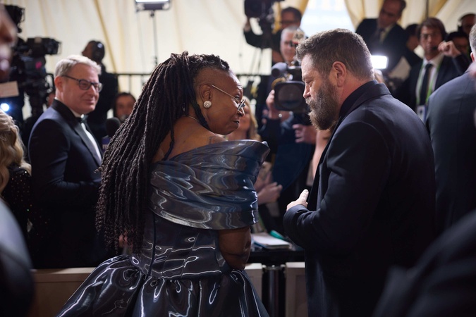 Whoopi Goldberg and Nick Offerman arrive on the red carpet of the 97th Oscars® at the Dolby® Theatre at Ovation Hollywood on Sunday, March 2, 2025., Credit:Avalon.red / Avalon