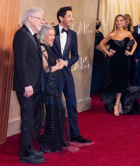 Elliot Brody, Sylvia Plachy and Adrien Brody arrive on the red carpet of the 97th Oscars® at the Dolby® Theatre at Ovation Hollywood on Sunday, March 2, 2025., Credit:Avalon.red / Avalon
