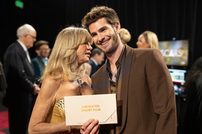 Andrew Garfield and Goldie Hawn pose backstage at the Oscar® for Animated Short Film during the live ABC Telecast of the 97th Oscars® at the Dolby® Theatre at Ovation Hollywood on Sunday, March 2, 2025., Credit:A.M.P.A.S. / Avalon