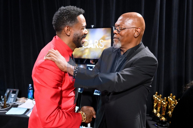 Colman Domingo and Samuel L. Jackson at the live ABC Telecast of the 97th Oscars® at the Dolby® Theatre at Ovation Hollywood on Sunday, March 2, 2025., Credit:A.M.P.A.S. / Avalon