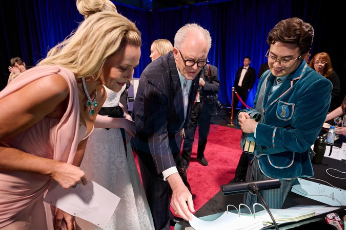 Connie Nielsen, John Lithgow and Bowen Yang backstage during the live ABC Telecast of the 97th Oscars® at Dolby® Theatre at Ovation Hollywood on Sunday, March 2, 2025., Credit:A.M.P.A.S. / Avalon