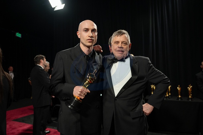 Mark Hamill poses back stage with Oscar® winner for Original Score Daniel Blumberg the during the live ABC Telecast of the 97th Oscars® at Dolby® Theatre at Ovation Hollywood on Sunday, March 2, 2025., Credit:A.M.P.A.S. / Avalon