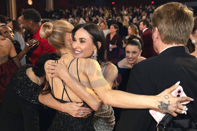 Ariana Grande, Demi Moore and Margaret Qualley at the live ABC Telecast of the 97th Oscars® at the Dolby® Theatre at Ovation Hollywood on Sunday, March 2, 2025., Credit:A.M.P.A.S. / Avalon